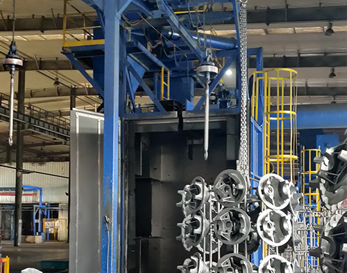 吊钩式抛丸机分为单吊钩和双吊钩,吊钩式抛丸机由两个吊钩装载工件交替进入抛丸清理室内。利用抛丸器将0.2~0.8的弹丸抛向工件的表面,使得工件的表面达到一定的粗糙度,让工件变得美观,或者改变工件的压应力提高寿命。本机型广泛应用于铸造、建筑、化工、电机、机床等行业的中、小型铸、锻件的表面清理或强化处理。